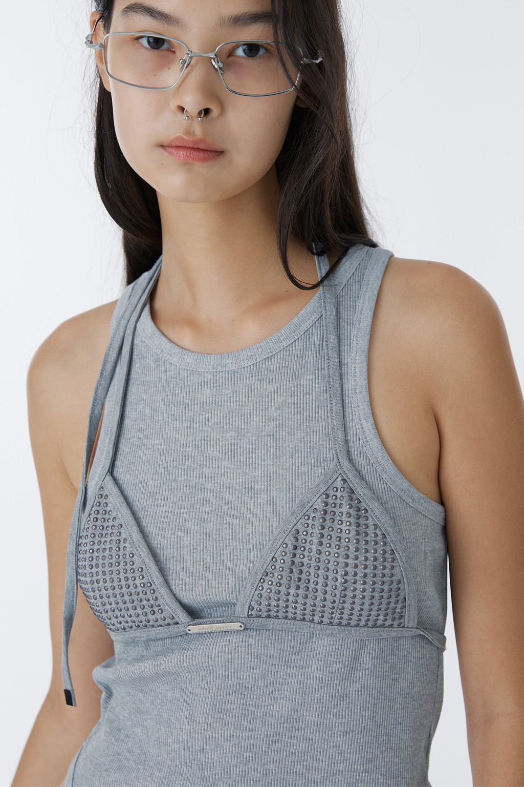 앞뒤로 착용이 가능한 면 100% 큐빅 포인트 비키니 탑입니다.