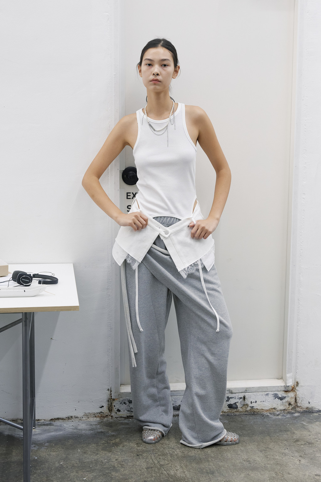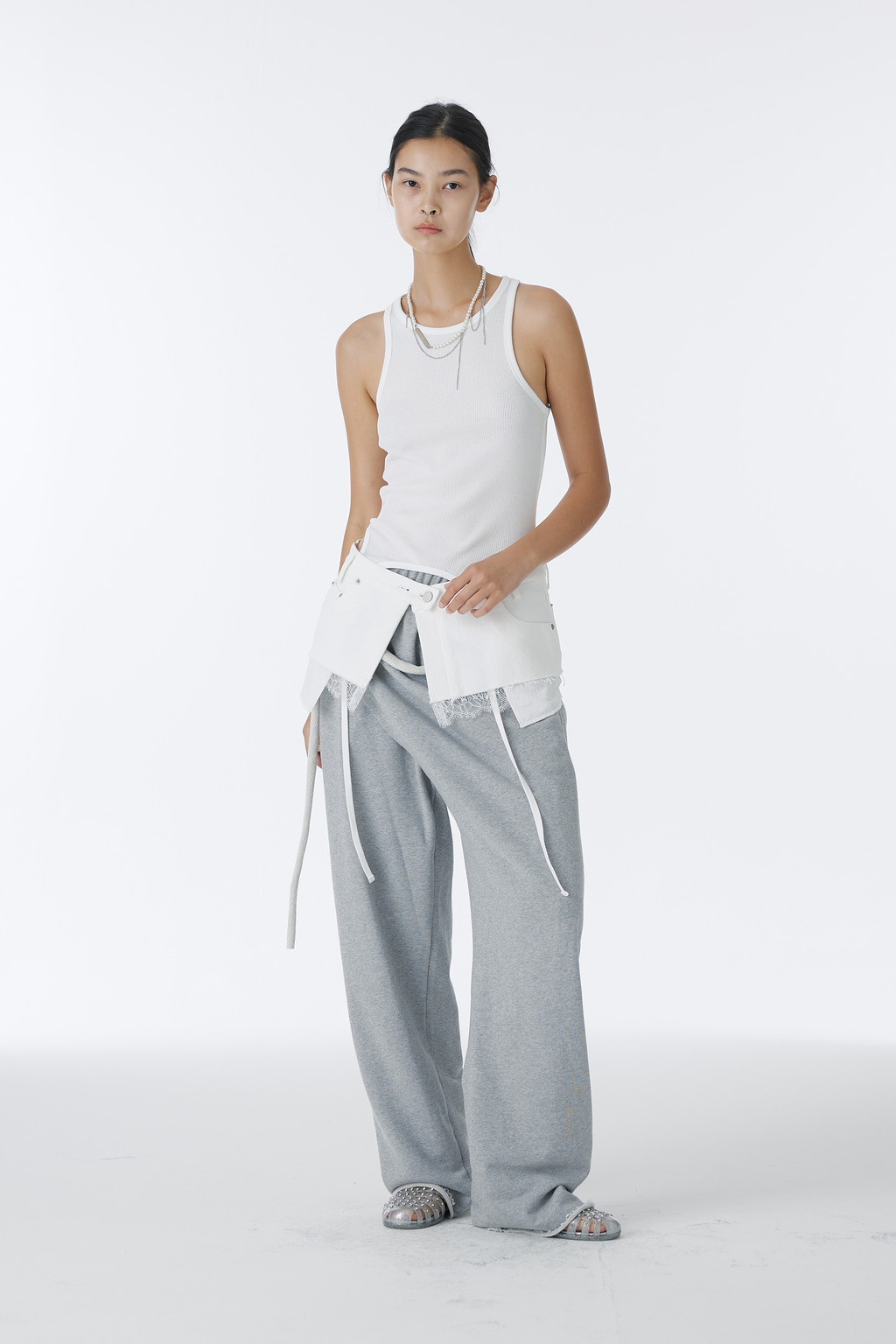 로고 금속 펜던트와 진주, 굵기다 다른 체인들을 믹스 매치해