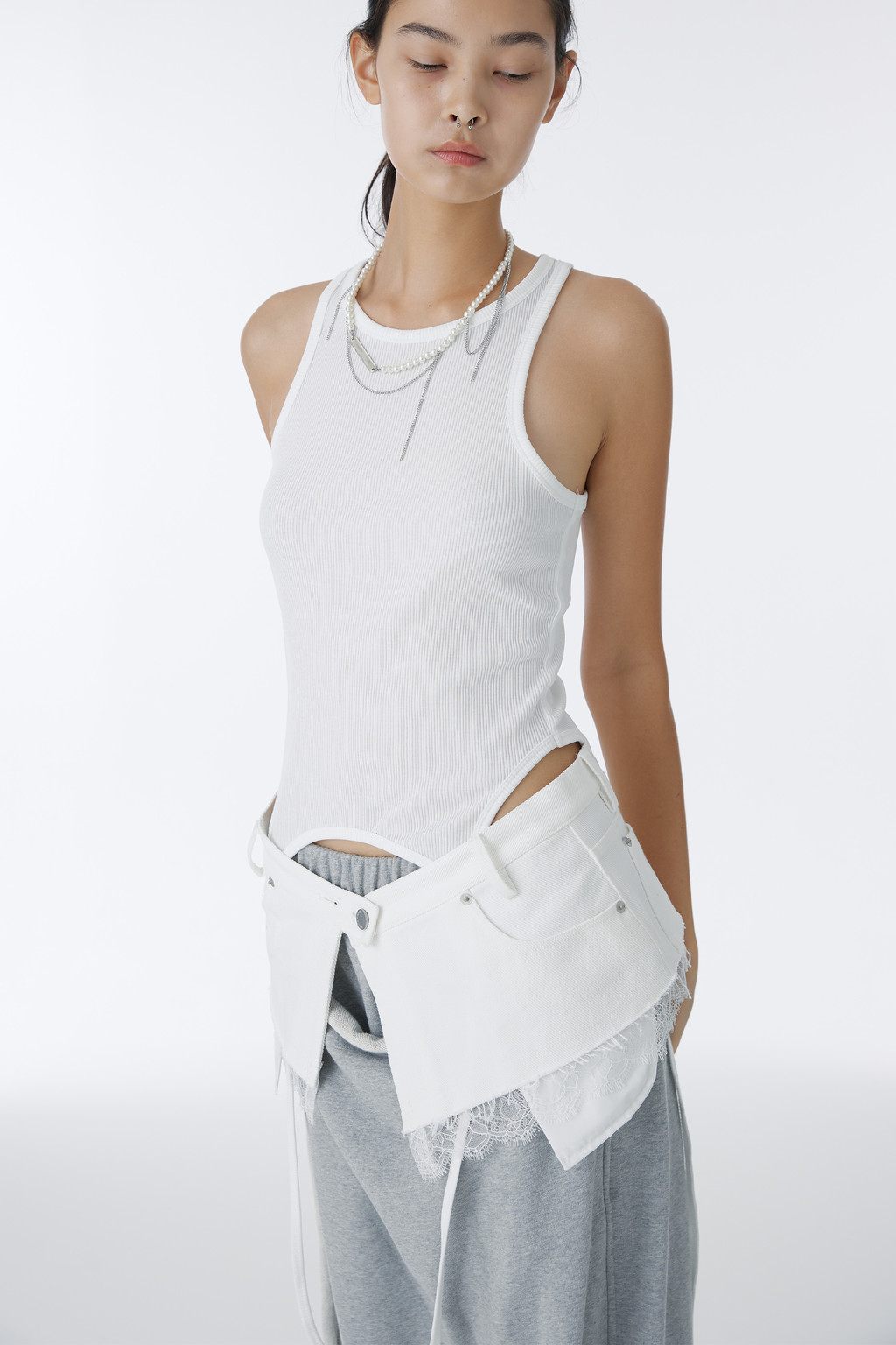 펄 컷아웃 체인 네크리스