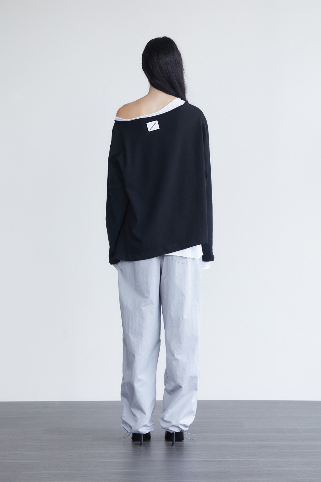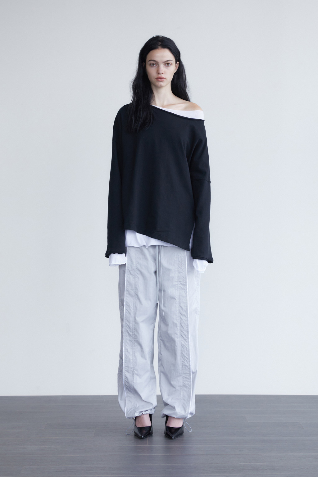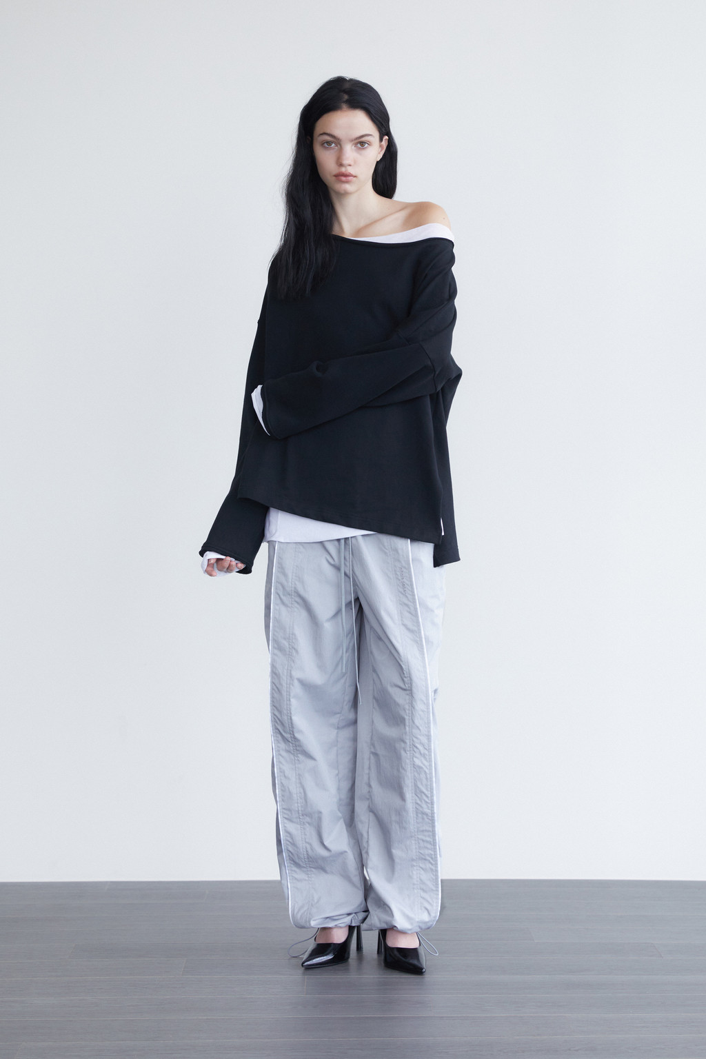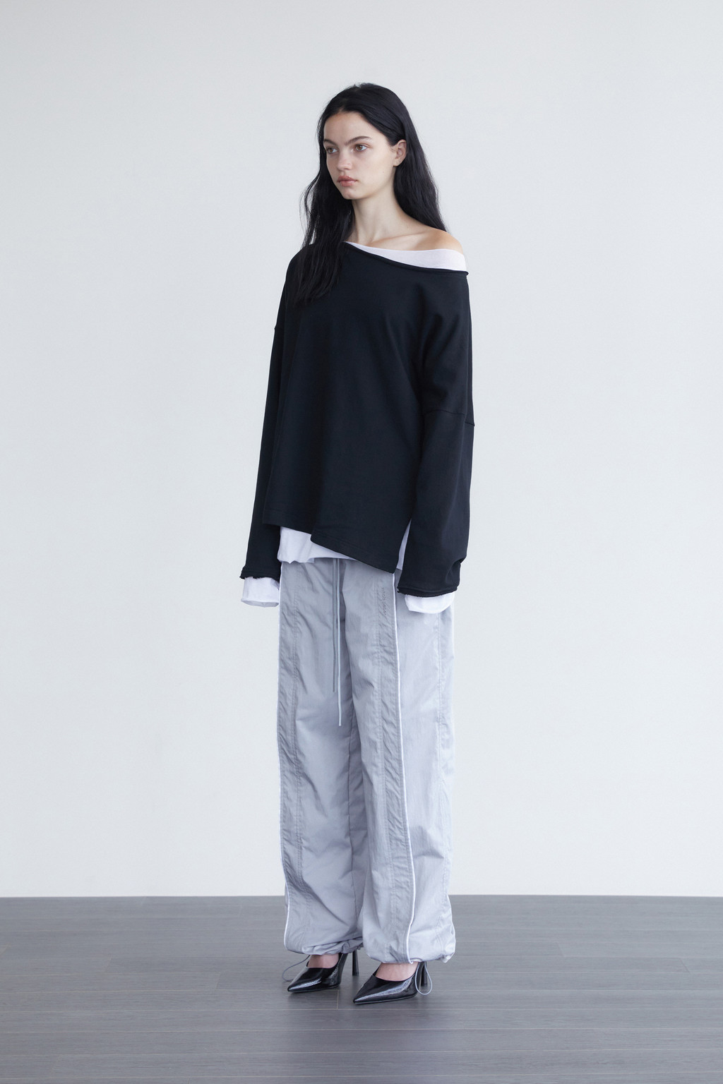 은은한 광감이 도는 나일론 트랙 팬츠입니다. 폴리에스터가 함유되어 뻣뻣하지 않고 유연한 느낌을 느낄 수 있습니다. 오버사이즈 이지만 슬림한 핏감을 연출하며 넓은 핀턱 포인트에 흰색 라인 디테일과 홀페이퍼 로고 자수 디테일이 포인트인 제품입니다.허리 밴딩과 허리 스트링으로 사이즈 조절이 가능하고 편안한 착용감을 제공하며 밑단 스트링으로 다양한 핏으로 착용 할 수 있습니다. 내부 메쉬 안감이 있어 정전기를 예방할 수 있으며 어느정도의 보온성을 제공합니다. 양 사이드 포켓과 힙 포켓으로 실용성을 더했습니다.