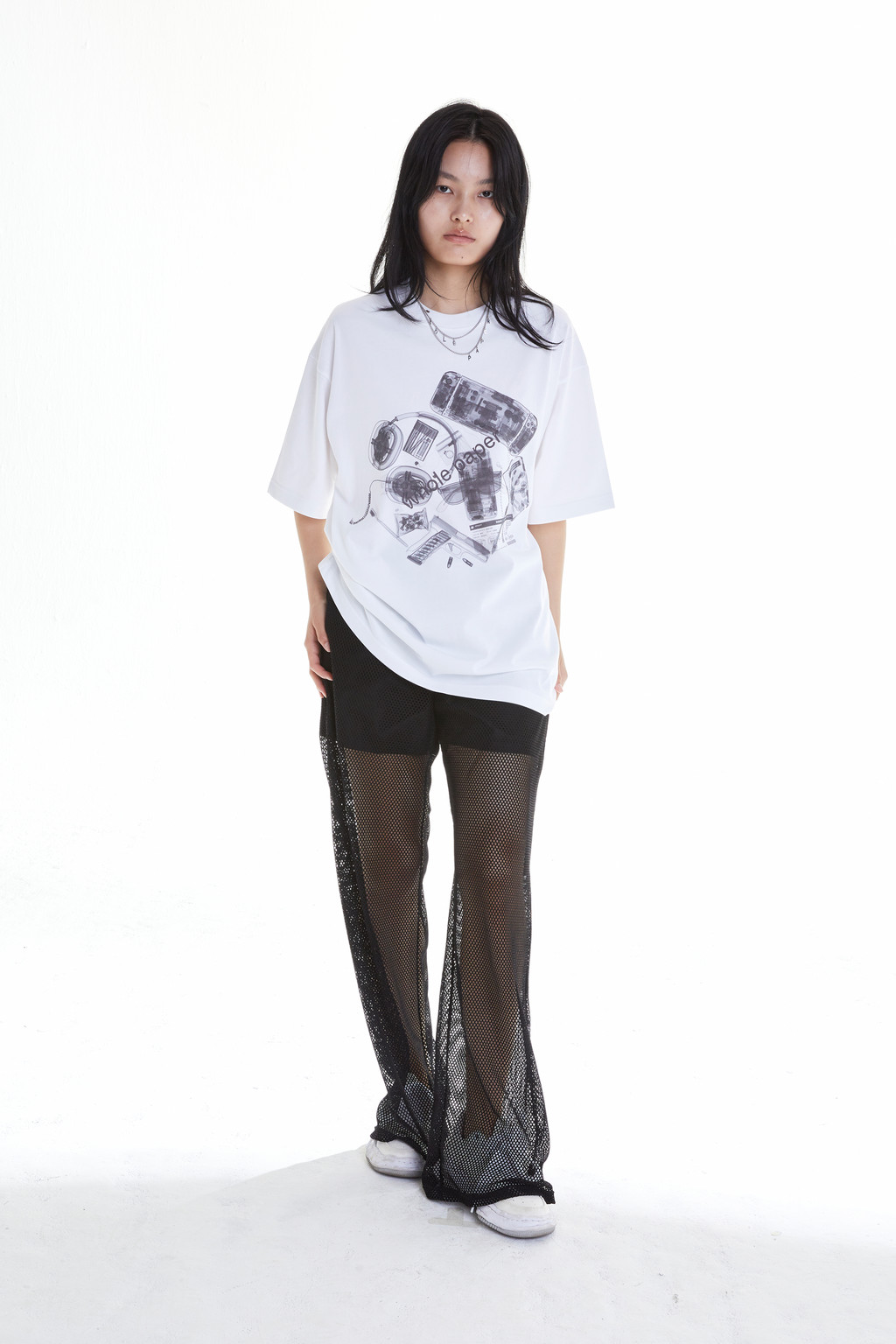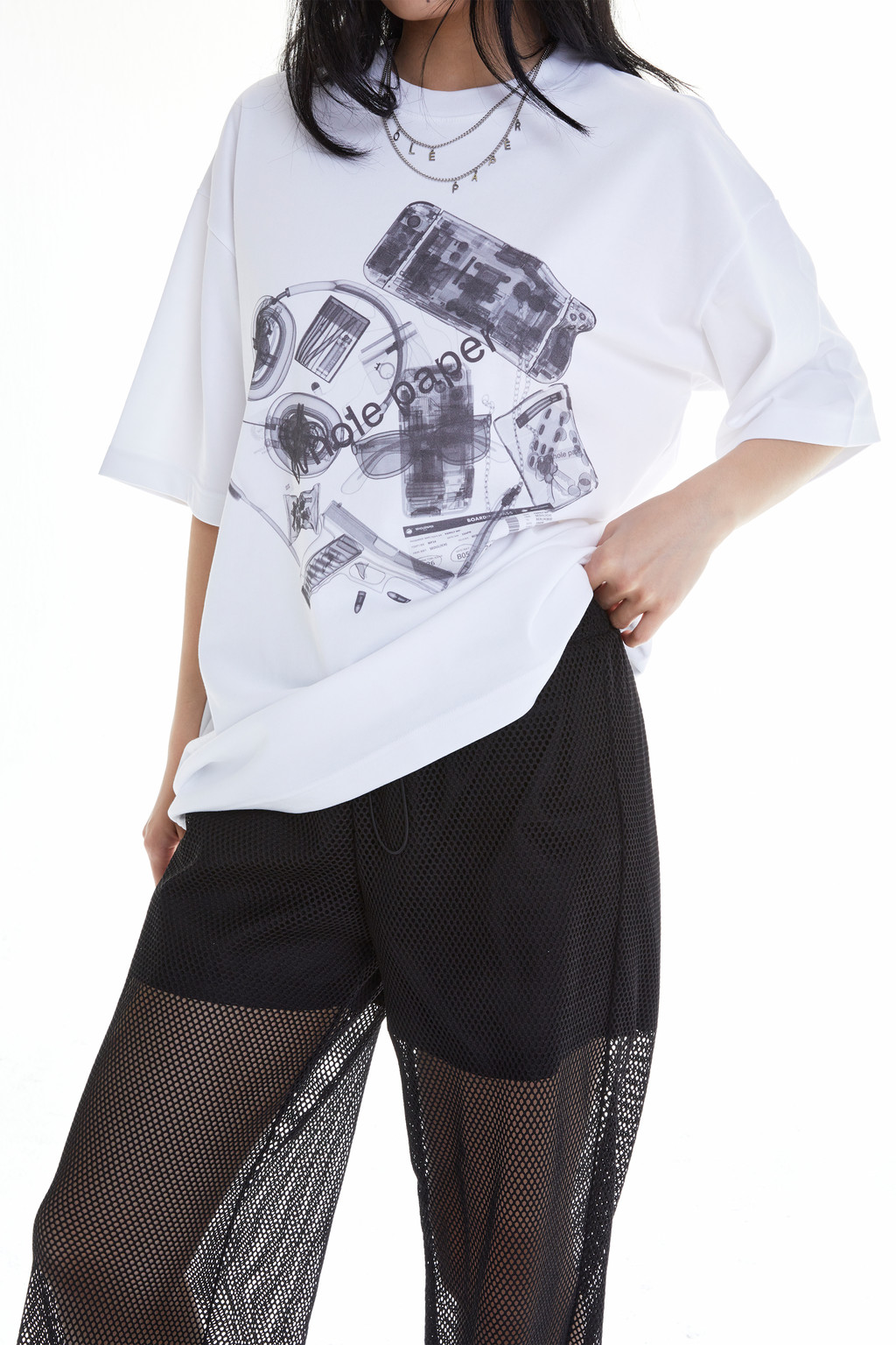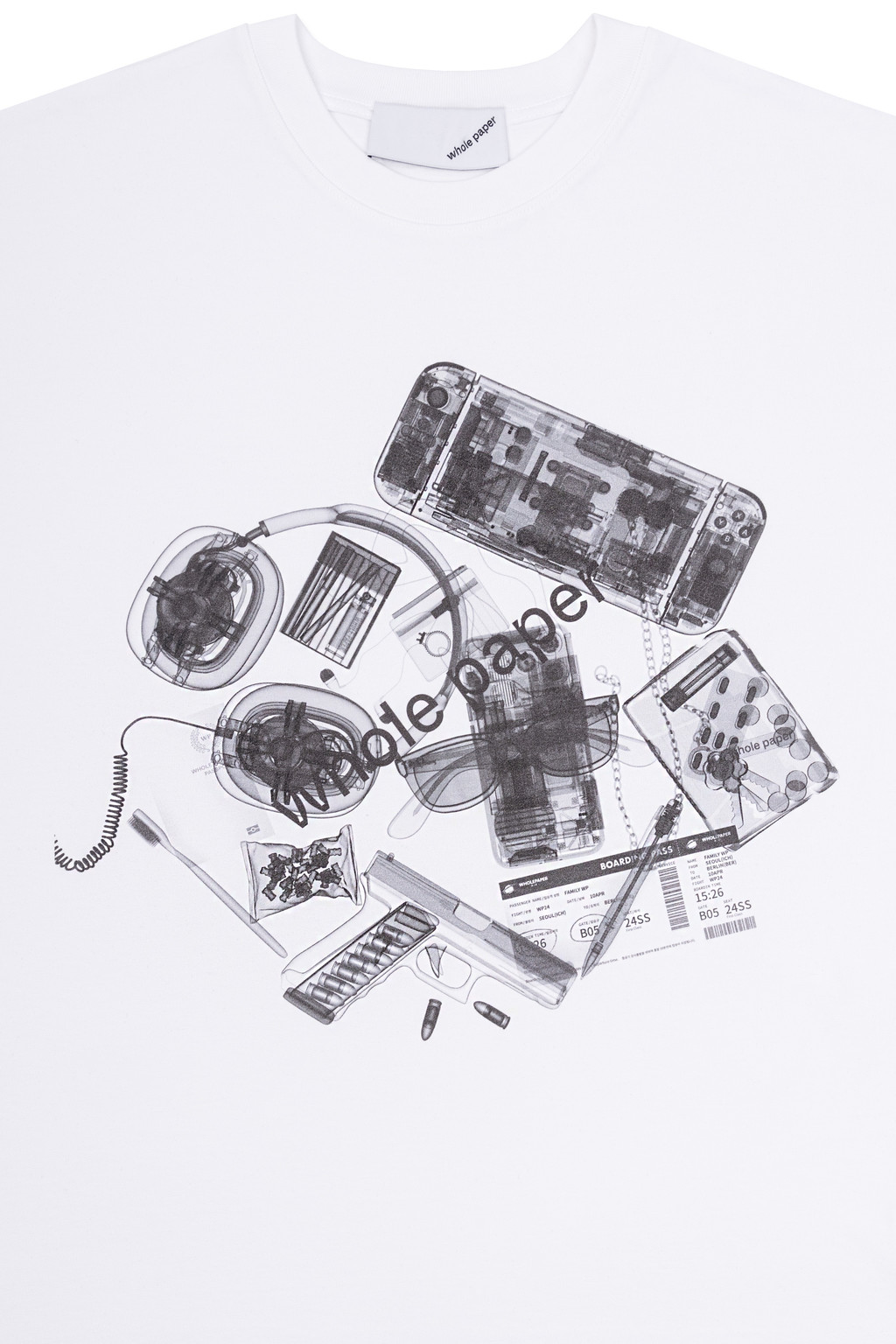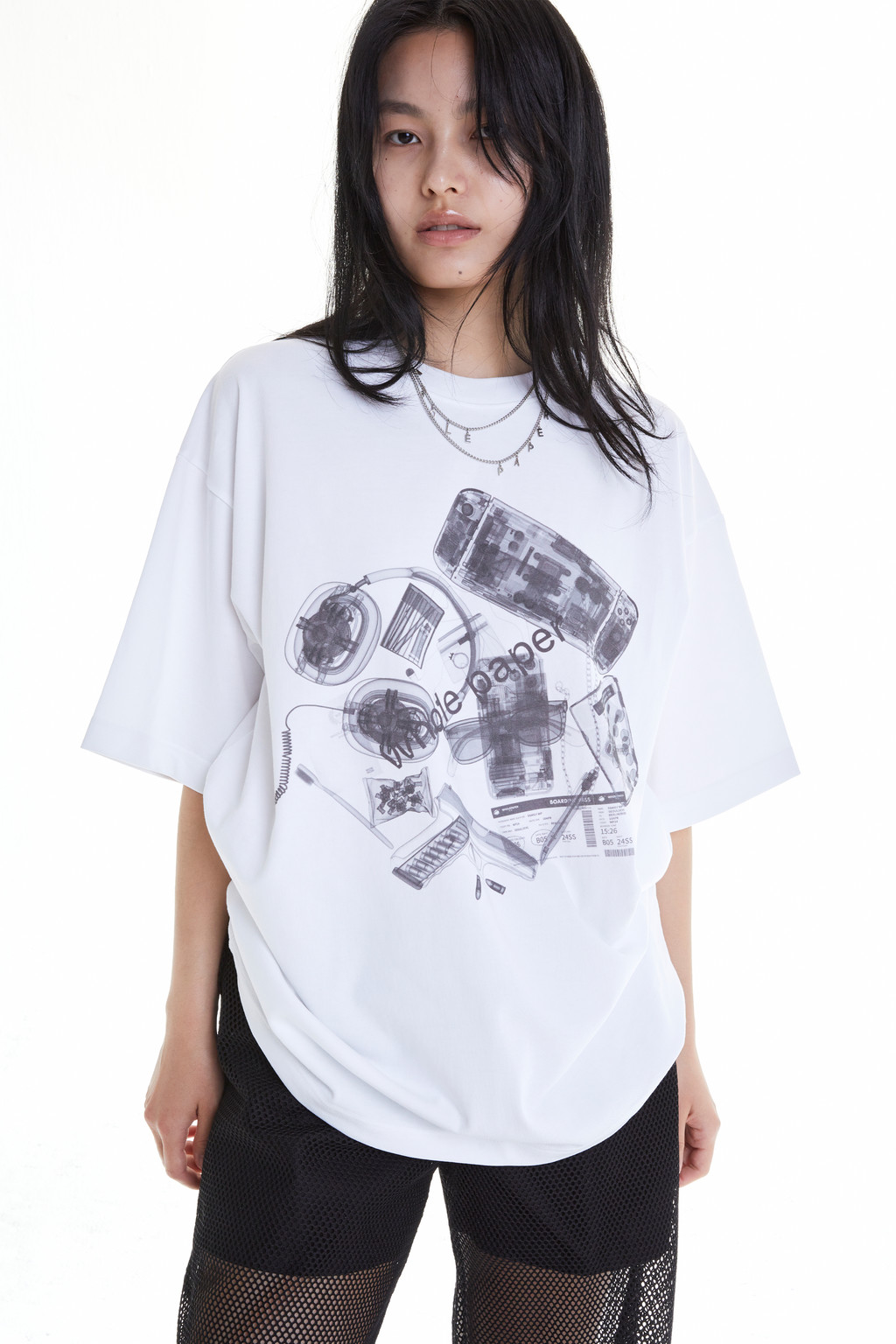공항 보안검색대 엑스레이에서 영감을 얻은 엑스레이 그래픽 오버핏 박스 티셔츠입니다. 가방에 담겨있는 다양한 물품들을 리얼하게 그래픽으로 살려 제작한 시즈널 아이템입니다. 툭 떨어지는 핏 감과 뻣뻣하지 않고 유연한 소재감을 느낄 수 있으며 코지, 바이오, 실켓 등 다양한 후가공이 되어 먼지가 덜하며 표면 텍스쳐의 부드러움을 느낄 수 있습니다. 2XL는 남성분들도 착용이 가능한 사이즈입니다.