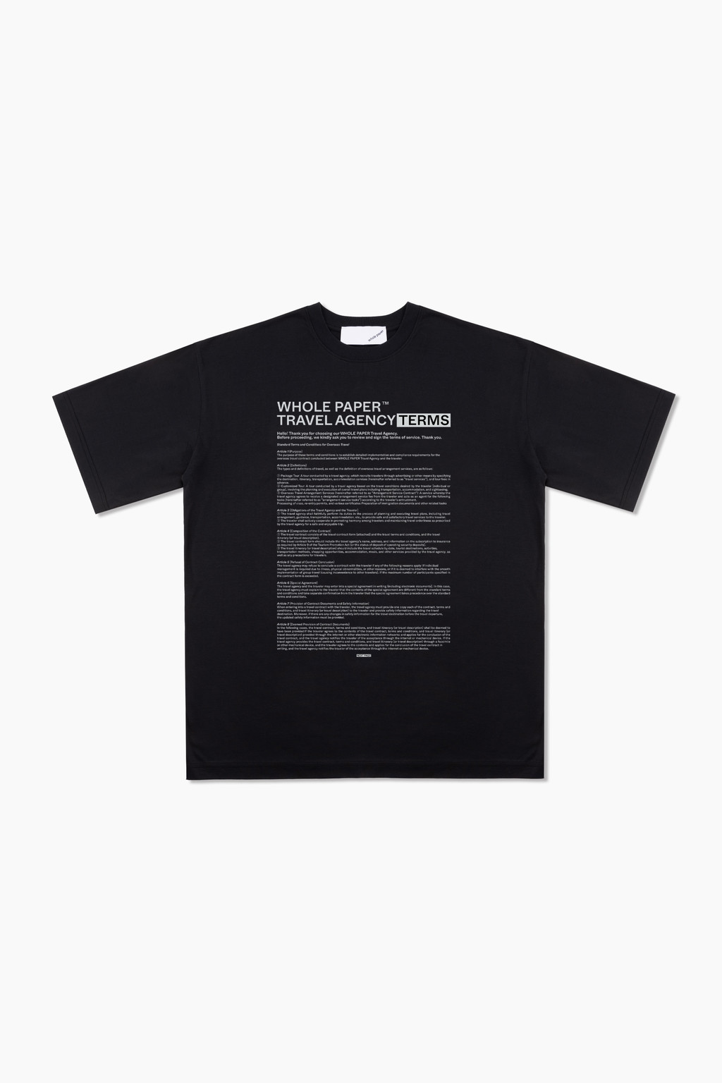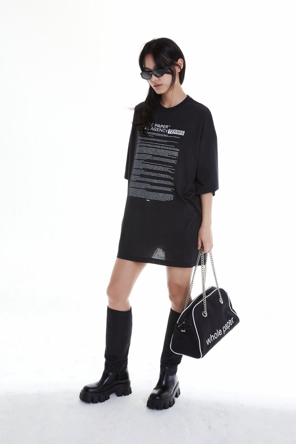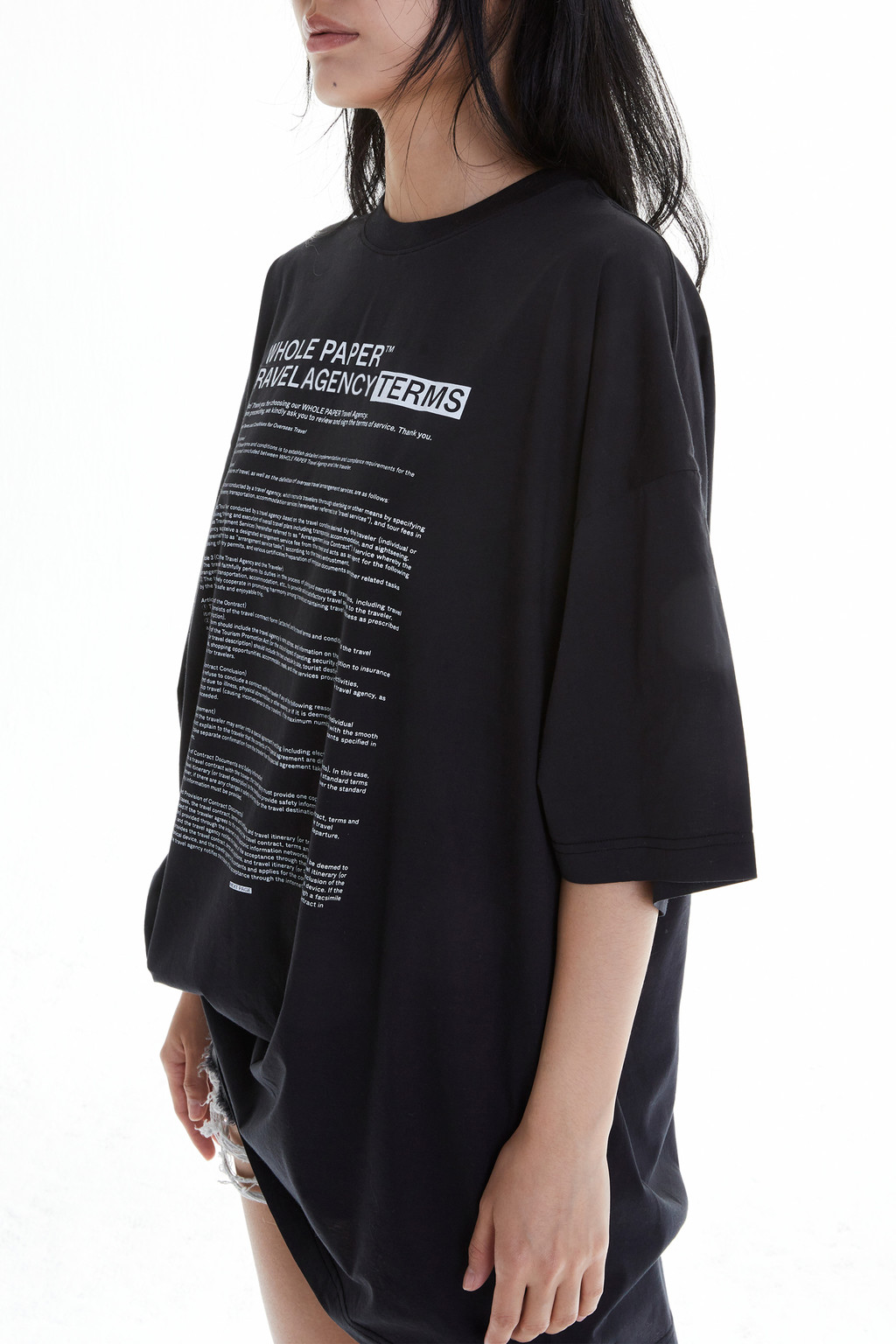여행사 약관 동의서를 모티프로 디자인한 그래픽 오버핏 시스루 박스 티셔츠입니다. 전면에 텍스트 타입의 그래픽과 시스루 한 원단의 조합으로 매력을 더했습니다. 실켓 가공으로 실키 한 텍스처와 얇은 두께감으로 시원하고 슬림해보이는 핏감을 제공하며 숏츠 및 다양한 하의와 매칭할 수 있는 데일리한 제품입니다.