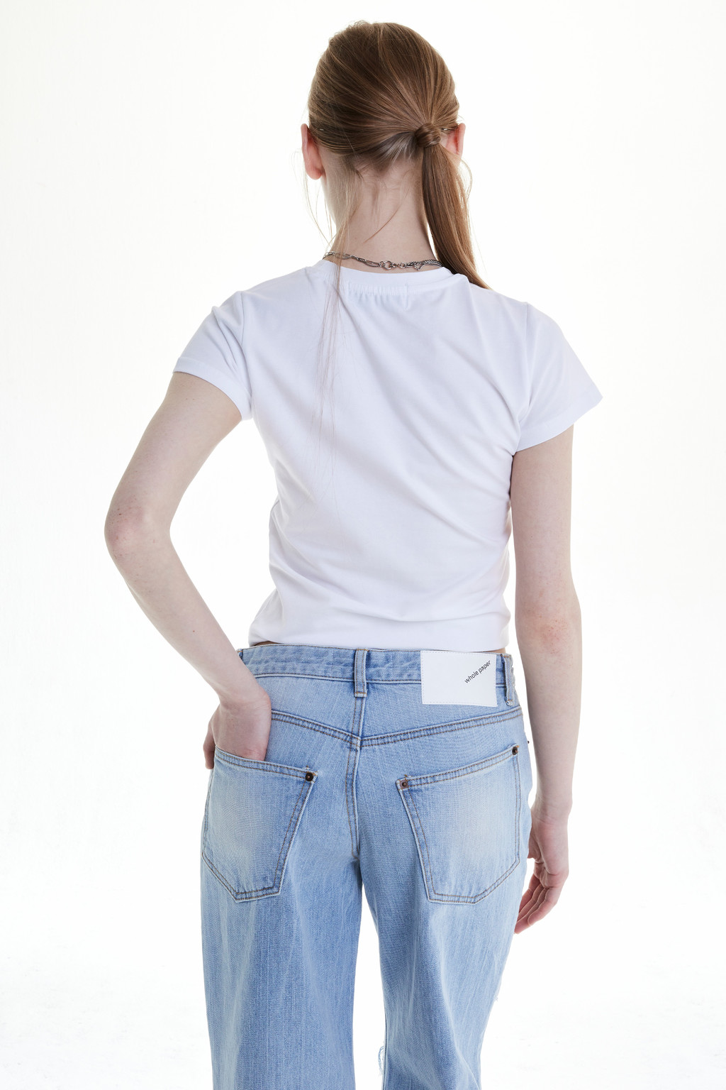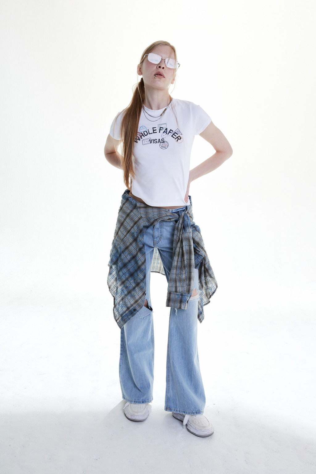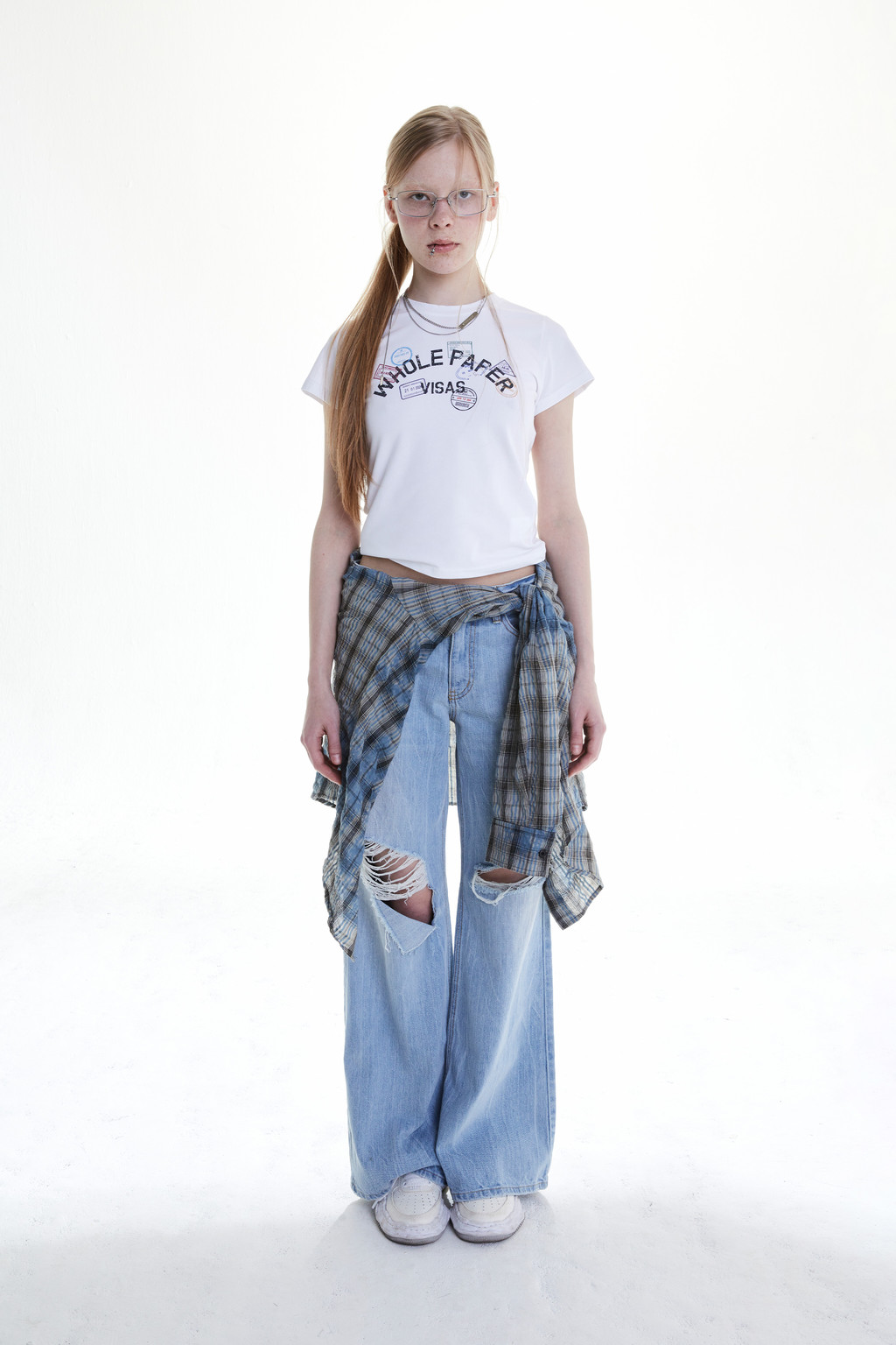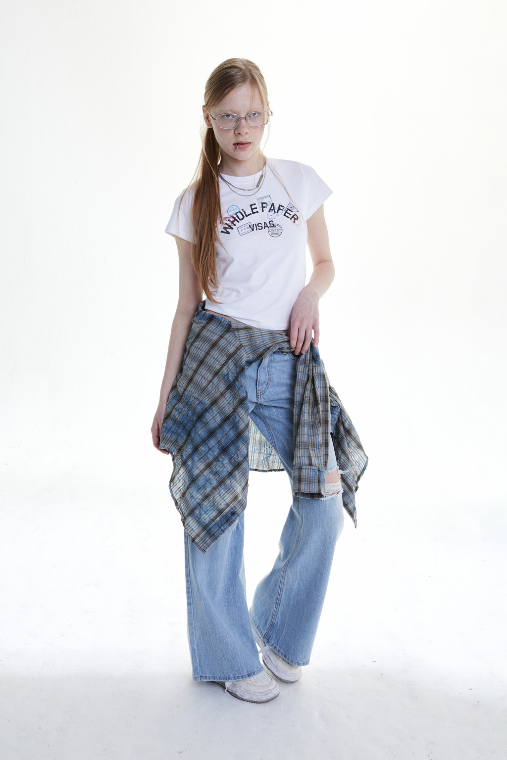 입국심사 비자 스탬프를 모티프로 디자인한 그래픽 타이트 티셔츠입니다. 각 나라의 도장을 연출하여 재미와 빈티지한 무드를 느낄 수 있습니다. 짱짱하고 신축성 좋은 면 스판 원단으로 편안한 착용감과 실켓 처리된 원단으로 시원하고 부드러운 텍스처를 느낄 수 있습니다.