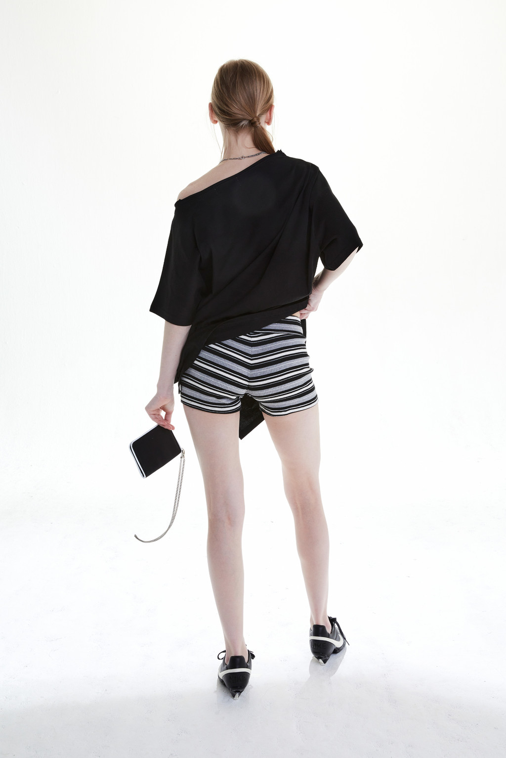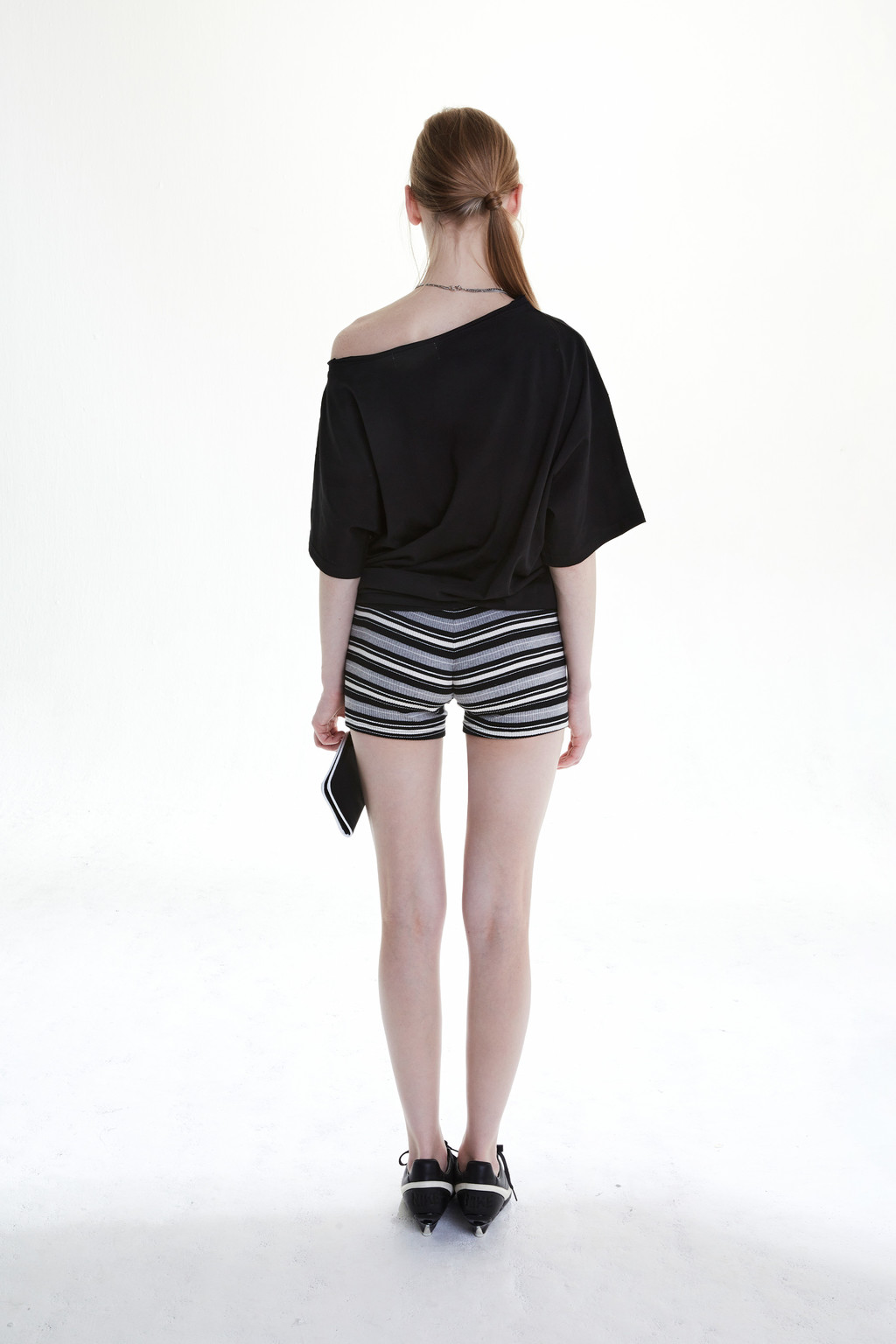 스트라이프 골지로 제작된 숏츠입니다. 골지 니트형 도톰한 원단을 사용한 레깅스 타입의 숏츠로 절개 라인을 최소화 스트라이프 패턴을 살려내었고 몸을 꽉 잡아주는 핏 감을 제공합니다. 다양한 탑과 매칭하여 스타일링하기 좋은 제품이며 이너로도 활용성 좋습니다.