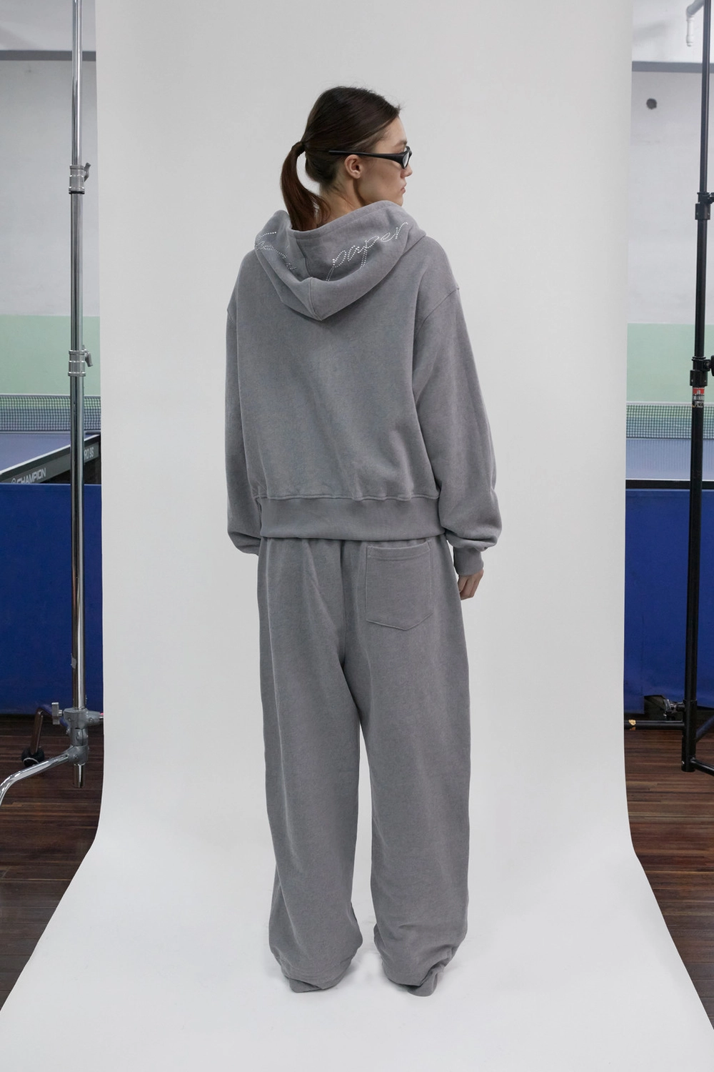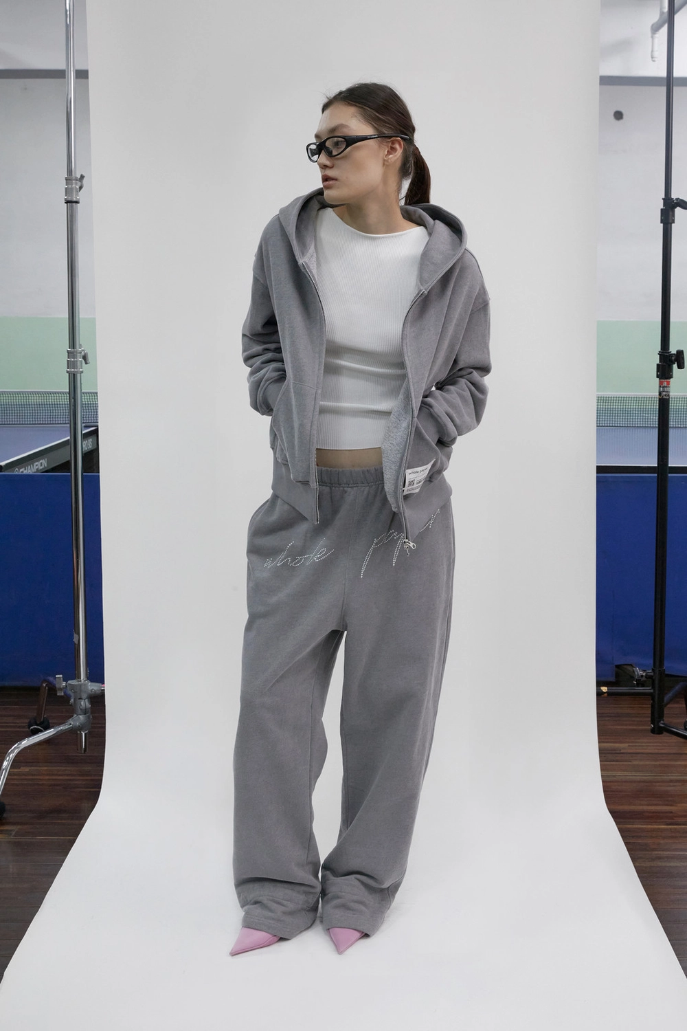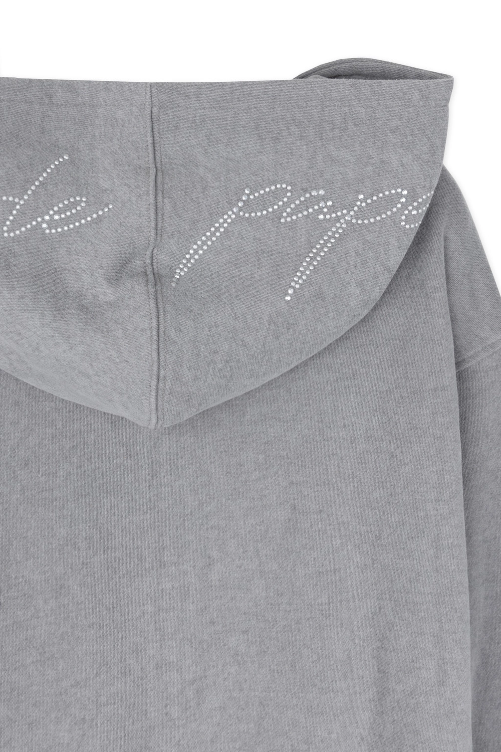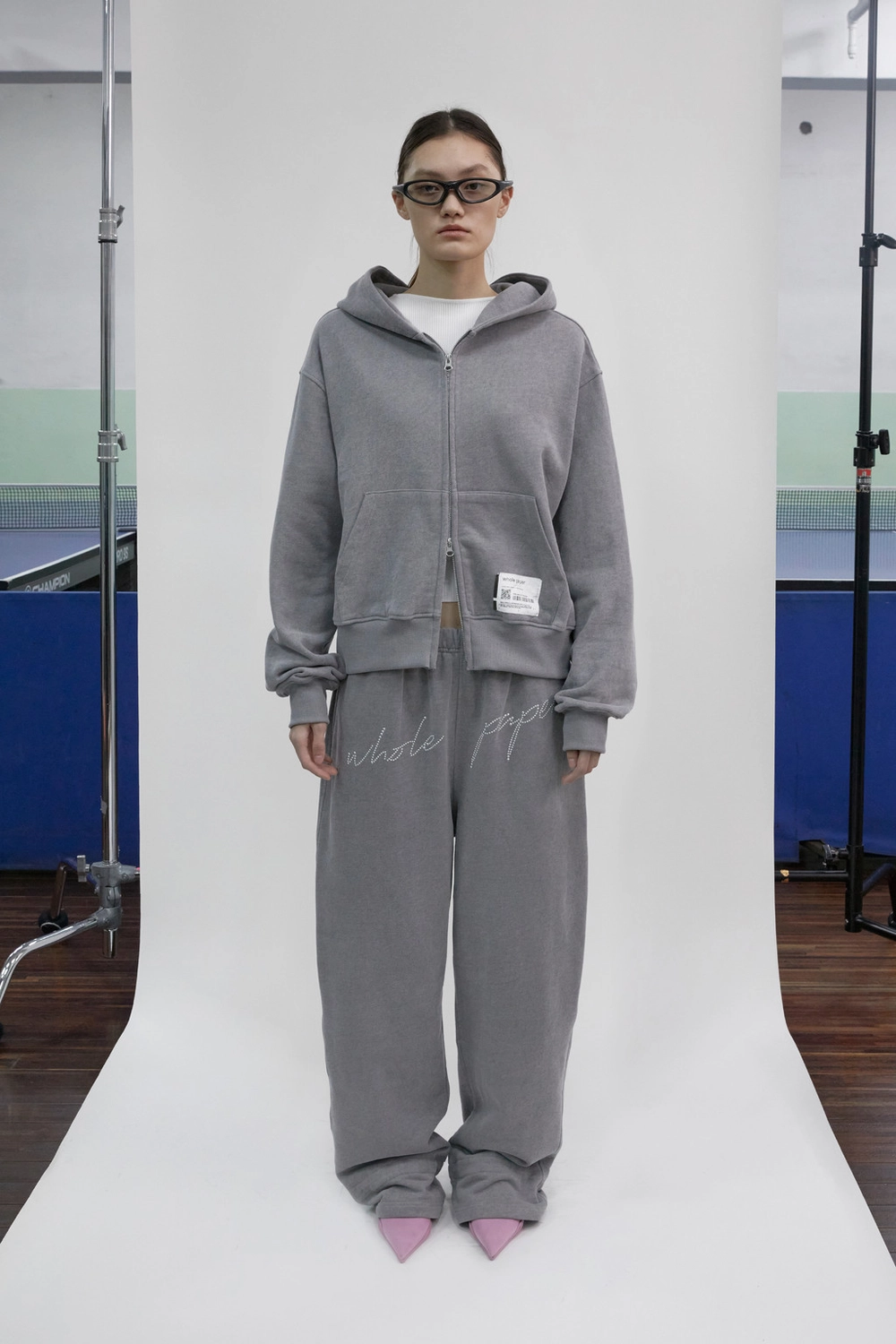 피그먼트 워싱이 된 면 100% 양면 기모 원단에 톤온톤 실버 큐빅 그래픽으로 부담스럽지 않은 포인트를 살린 후드집업입니다. 기모 후드지만 얇은 두께감으로 겨울철 아우터 속 이너로 활용하거나 간절기 단독 아우터로 착용하기 적합하며 넉넉한 후드 사이즈로 이너로 활용 시 큐빅이 특히 돋보이는 제품입니다. 페이퍼(타이백) 라벨로 포인트를 주었으며 YKK 투웨이 지퍼 활용성을 더했습니다.
